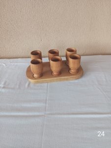 Set od 6 drvenih čašica za piće sa postoljem.